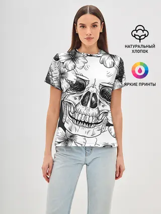 Мужская футболка оверсайз / Черепа и розы / Skull and Roses