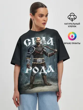 Женская футболка оверсайз / Сила Рода. Славянский воин