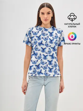 Лонгслив женский. Хлопок / Бабочки / Butterflies