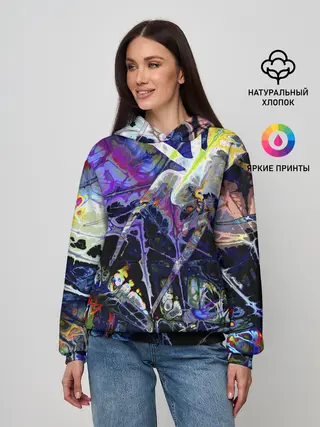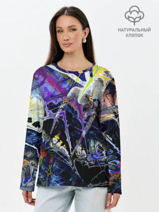 Лонгслив женский. Хлопок / Gasoline stains abstraction