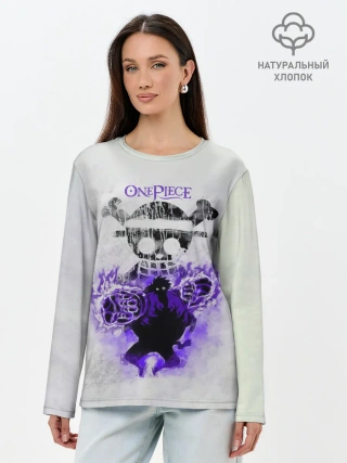 Лонгслив женский. Хлопок / Пламенный резиновый Луффи | One Piece