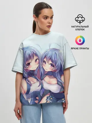 Женская футболка оверсайз / Аниме девочки-двойняшки