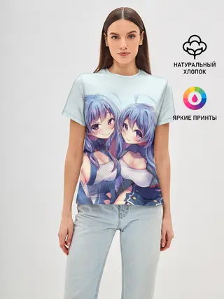 Женская базовая футболка / Аниме девочки-двойняшки