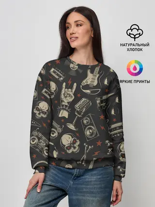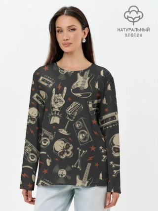 Лонгслив женский. Хлопок / Spotify Рок Черепа
