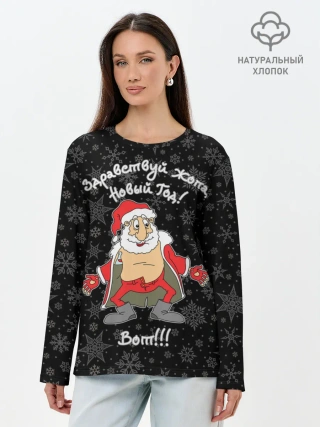Лонгслив женский. Хлопок / Здравствуй ...опа, Новый Год!