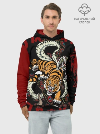 Худи мужской база хлопок / Японский Тигр