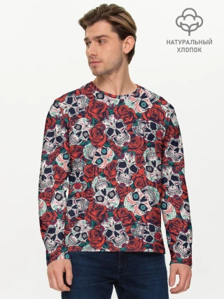 Мужской лонгслив базовый / Тату черепа и розы