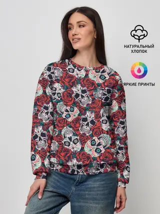 Женский свитшот / Тату черепа и розы
