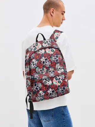 Рюкзак джинсовый / Тату черепа и розы