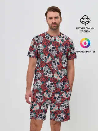 Мужской костюм с шортами / Тату черепа и розы