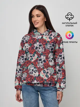 Женское худи / Тату черепа и розы