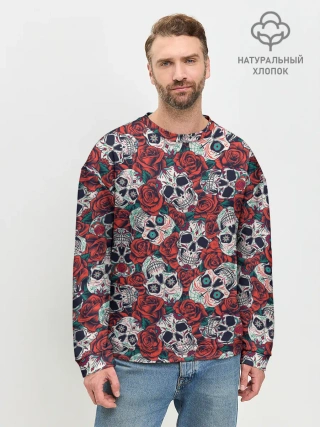 Мужской свитшот базовый / Тату черепа и розы