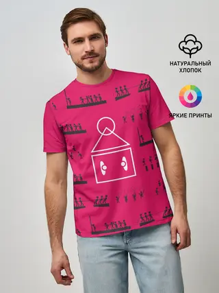 Мужская футболка оверсайз / SQUID GAME ЛОГО PINK