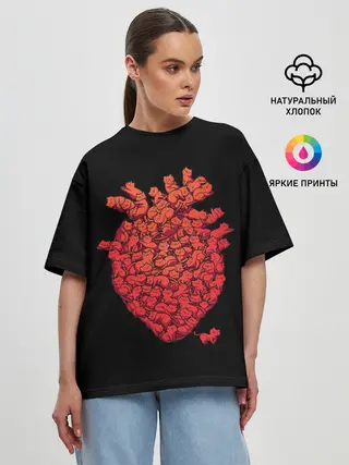 Женская футболка оверсайз / Сердце Из Котиков