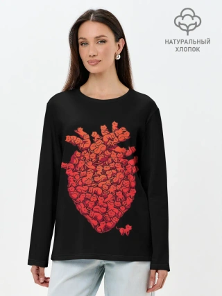 Лонгслив женский. Хлопок / Сердце Из Котиков