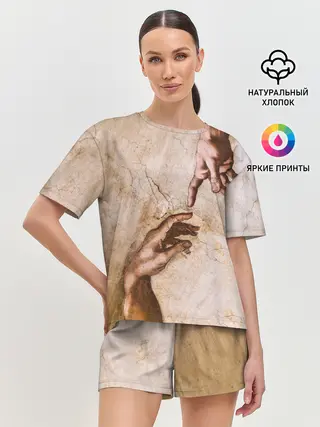 Женская пижама с шортами / Микеланджело сотворение Адама