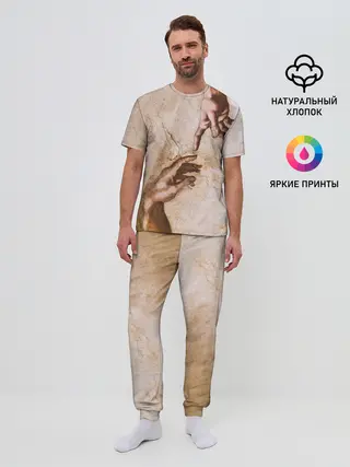Мужская пижама с брюками / Микеланджело сотворение Адама