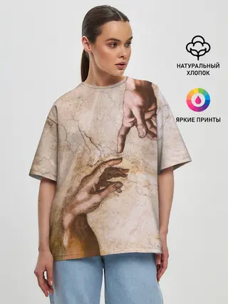 Женская футболка оверсайз / Микеланджело сотворение Адама