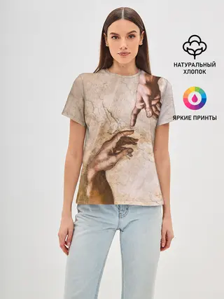 Женская базовая футболка / Микеланджело сотворение Адама