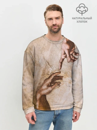 Мужской свитшот базовый / Микеланджело сотворение Адама