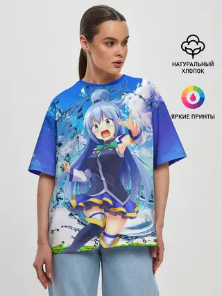 Мужская футболка оверсайз / коносуба аква лого