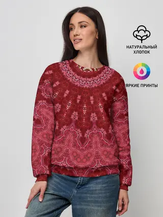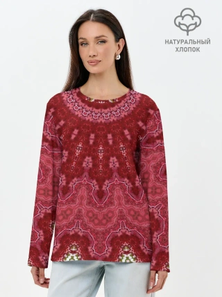 Лонгслив женский. Хлопок / Красно-розовый калейдоскоп