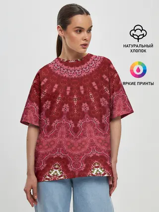 Женская футболка оверсайз / Красно-розовый калейдоскоп