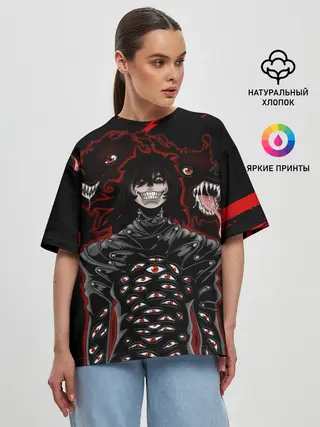 Женская футболка оверсайз / Юмико Такаги в черном Hellsing