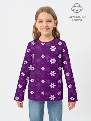 Детский лонгслив / узор цветы на фиолетовом фоне
