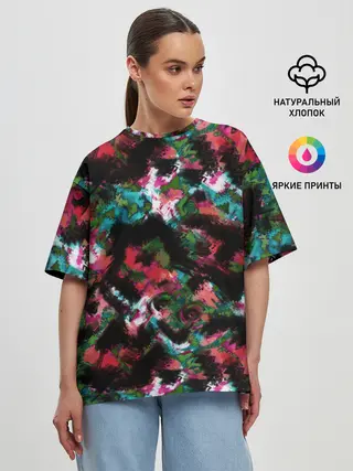 Мужская футболка оверсайз / Разноцветные разводы красок
