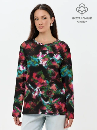 Лонгслив женский. Хлопок / Гранжевый абстрактный узор