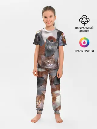 Детская пижама с брюками / Много котов