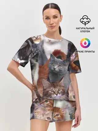 Женская пижама с шортами / Много котов