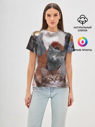 Женская базовая футболка / Много котов
