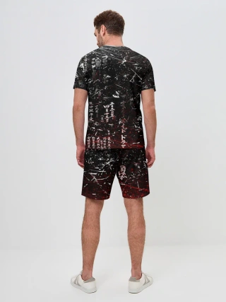 Мужской костюм с шортами / ИТАЧИ УЧИХА ИЕРОГЛИФЫ гранж