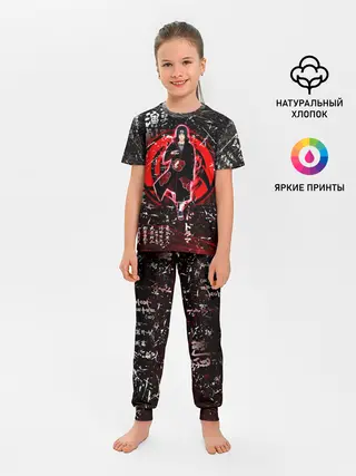 Детская пижама с брюками / ИТАЧИ УЧИХА ИЕРОГЛИФЫ гранж