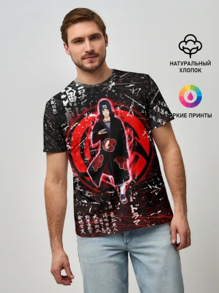 Мужская базовая футболка / ИТАЧИ УЧИХА ИЕРОГЛИФЫ гранж
