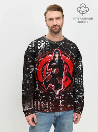 Мужской свитшот базовый / ИТАЧИ УЧИХА ИЕРОГЛИФЫ гранж