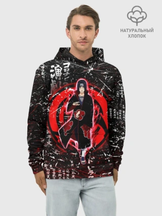 Худи мужской база хлопок / ИТАЧИ УЧИХА ИЕРОГЛИФЫ гранж