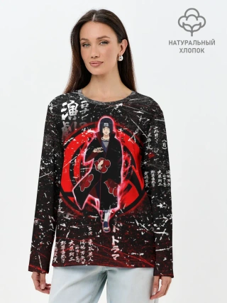 Лонгслив женский. Хлопок / ИТАЧИ УЧИХА ИЕРОГЛИФЫ гранж