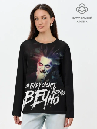 Лонгслив женский. Хлопок / Жить вечно. Вечно.
