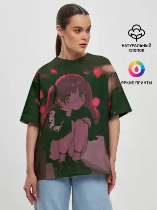 Женская футболка оверсайз / Аниме девушка
