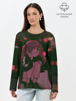 Лонгслив женский. Хлопок / Аниме девушка