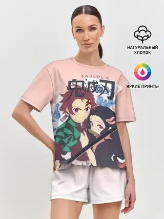 Женская футболка оверсайз / Клинок рассекающий демонов