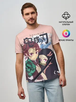 Мужская футболка оверсайз / Tanjirou & Nezuko