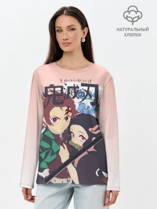 Лонгслив женский. Хлопок / Клинок рассекающий демонов
