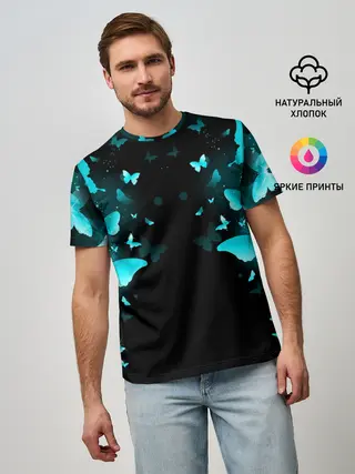 Мужская базовая футболка / НЕОНОВЫЕ БАБОЧКИ | NEON
