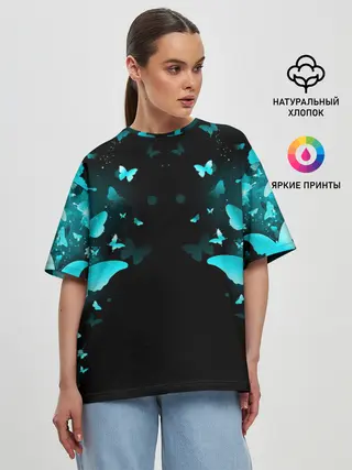 Женская футболка оверсайз / НЕОНОВЫЕ БАБОЧКИ | NEON