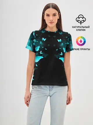Женская базовая футболка / НЕОНОВЫЕ БАБОЧКИ | NEON