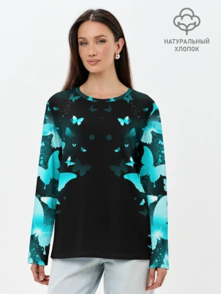 Лонгслив женский. Хлопок / НЕОНОВЫЕ БАБОЧКИ | NEON